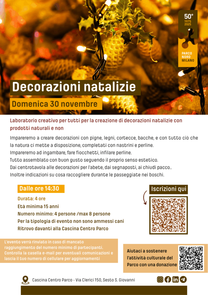 Domenica 30 novembre dalle ore 14:30 presso la Cascina Centro Parco si terrà un laboratorio creativo per la creazione di decorazioni natalizie.