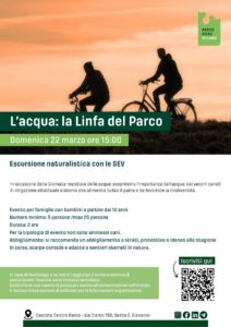 Domenica 22 Marzo, in occasione della Giornata mondiale delle acque, si terrà un’escursione naturalistica con le G.E.V. alla scoperta dell’importanza dell’acqua. Ripercorreremo la storia dei vecchi canali di irrigazione fino ad arrivare all’attuale sistema idrico che alimenta l’intero e ne favorisce la biodiversità.