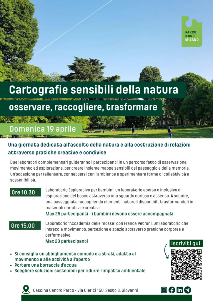 Domenica 19 presso Parco Nord Milano ti aspetta una giornata all’ascolto della natura e alla costruzione di relazioni attraverso pratiche creative e condivise.