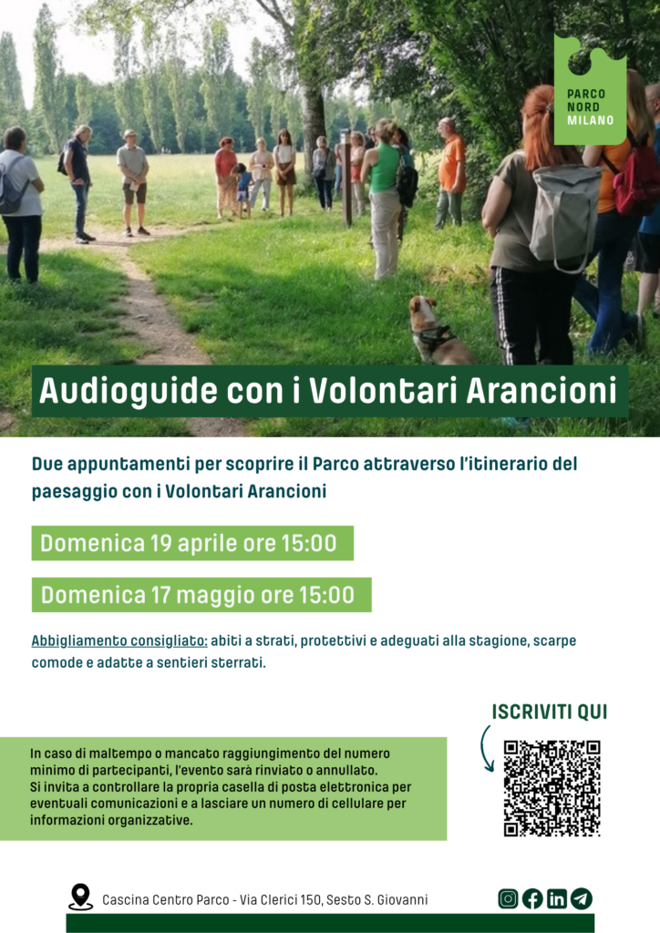 Domenica 19 aprile e domenica 17 maggio alle ore 15:00, presso Parco Nord Milano si terranno due appuntamenti per scoprire il Parco attraverso l’itinerario del paesaggio con i volontari arancioni.